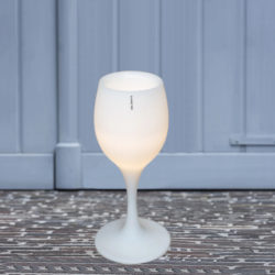Stijlvolle wijnkoeler met led verlichting. Je kunt hem van te voren opladen en daarna zonder snoer laten staan in de tuin!