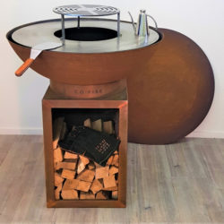 De Woodstock PRO is een zuil van Cortenstaal van 48 x 48 x 70 cm, die niet alleen de GrillRing tot de gewenste kook hoogte brengt, maar ook de mogelijkheid tot houtopslag geeft. De Woodstock PRO is een zwaardere uitvoering van de normale Woodstock en heeft een robustere uitstraling.