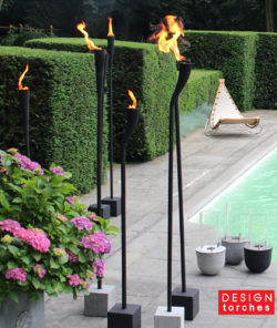De Jive fakkel is opvallend door zijn swingende asymmetrische vorm. Bij het plaatsen van twee of meer Jives wordt deze asymmetrie onderling versterkt zodat er een speelse opstelling ontstaat. De fakkel is gemaakt van mat zwart aluminium met een walnoot houten stok. Het bijvullen van de fakkel is zonder gedoe dankzij het “push & fill systeem en door de trechterfunctie kan de olie bijgevuld worden zonder dat je je handen vuil hoeft te maken.